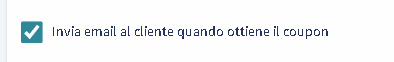 Abilitando questa casella, il cliente riceverà un'email automatica contenente tutti i dettagli sul nuovo coupon. Per le mail sono presenti già dei modelli mail standard personalizzati a seconda del cliente che non possono essere modificati. Questo tipo di comunicazione è utile per chi preferisce ricevere notifiche dettagliate e facilmente consultabili.