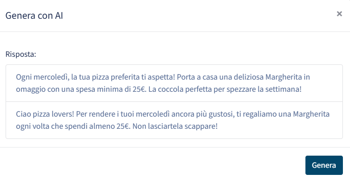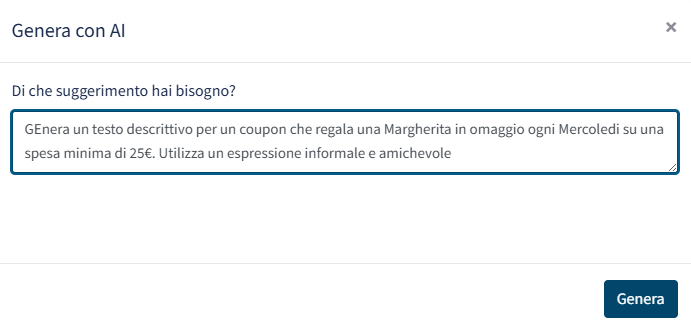 In questo modo ti aiuterà generando testi specifici alla tua attività.