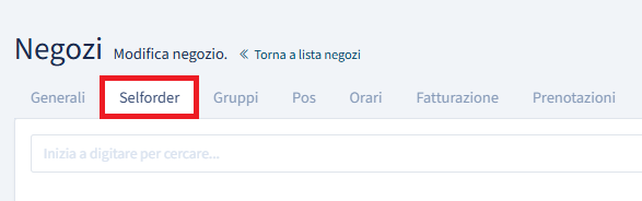 Seleziona il negozio su cui vuoi abilitare la funzione e poi clicca su "Selforder"
