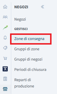 Quindi, clicca sul menù "Negozi" e poi nel sottomenù "Zone di consegna"