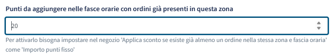 2. "Punti da aggiungere nelle fasce orarie con ordini già presenti in questa zona" e indica il numero fisso di punti da aggiungere: