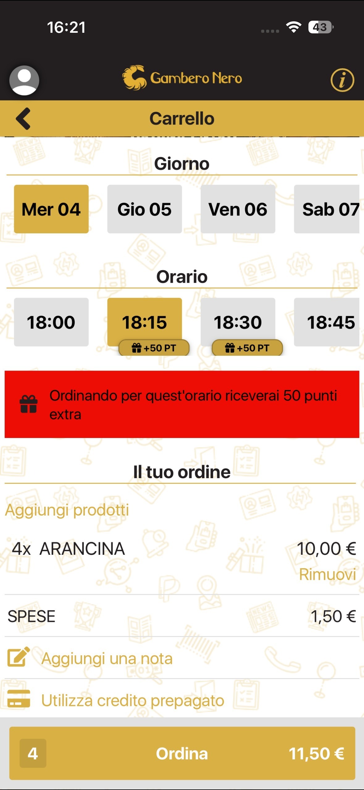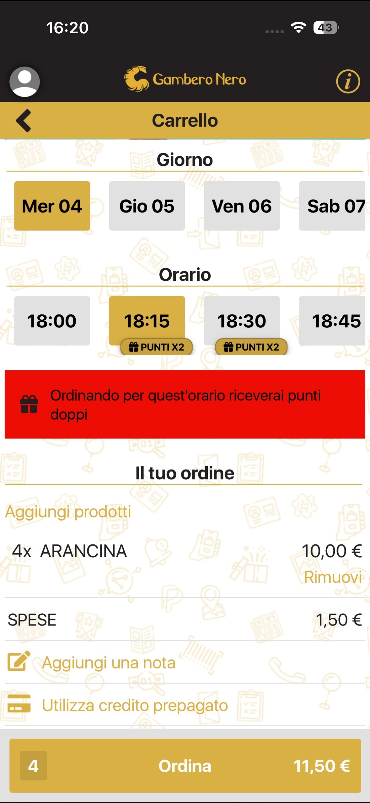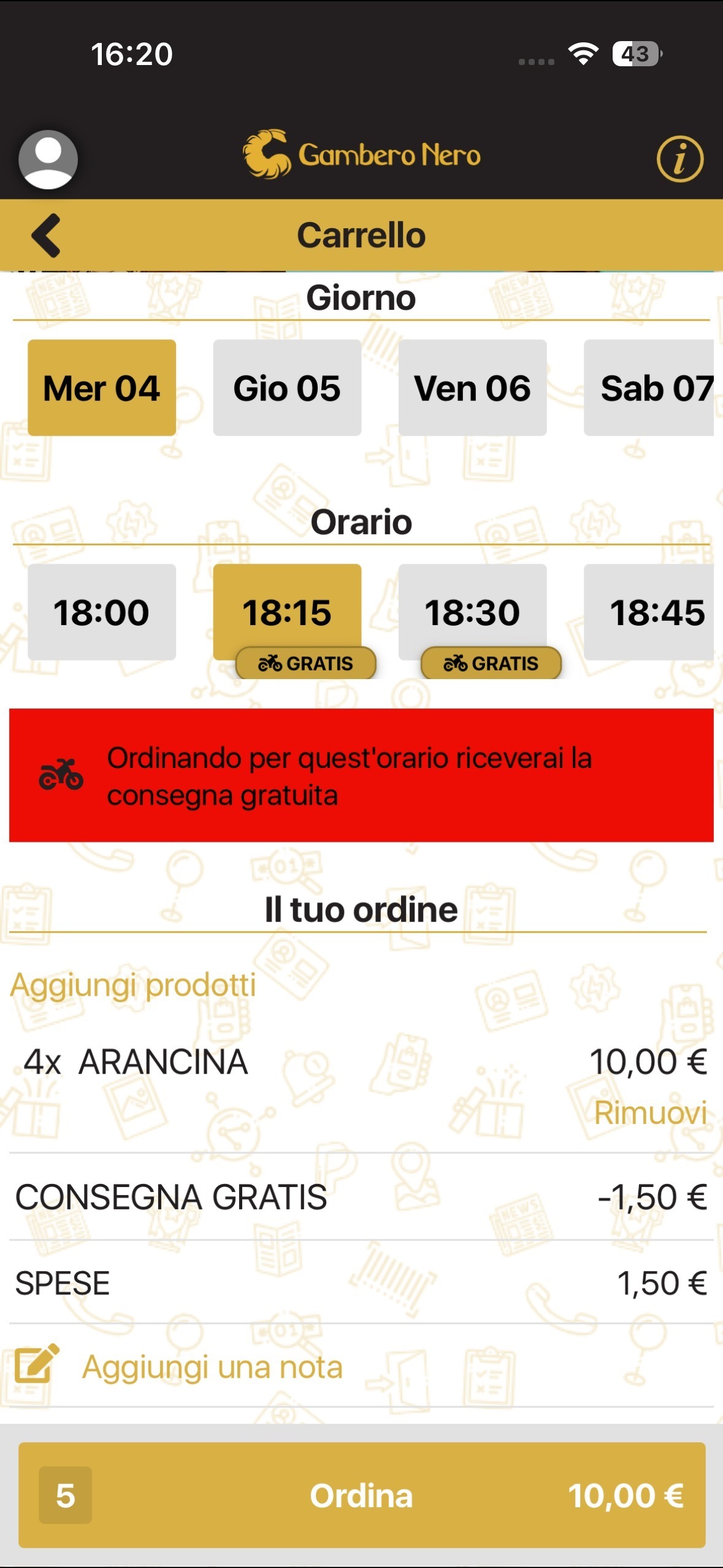 Ecco quindi come apparirà al cliente che si presta ad effettuare un ordine su APP, localizzato in una zona in cui è attiva la promozione ed esiste già un altro ordine per la stessa fascia oraria.